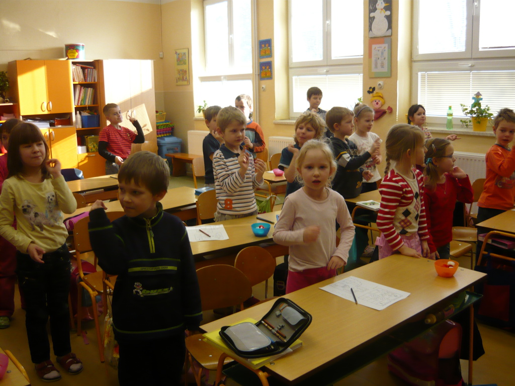 V lednu přišli do naší školy budoucí prvňáčci, aby se seznámili se školou, do které po prázdninách nastoupí. Prvňáčci se předváděli, co všechno se už naučili. Ale ani děti z MŠ nezůstaly pozadu a všem nám dokázaly, že i oni poznají některá písmenka a dovedou počítat. Všichni společně jsme zpívali a přednášeli říkanky.
