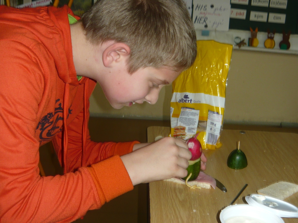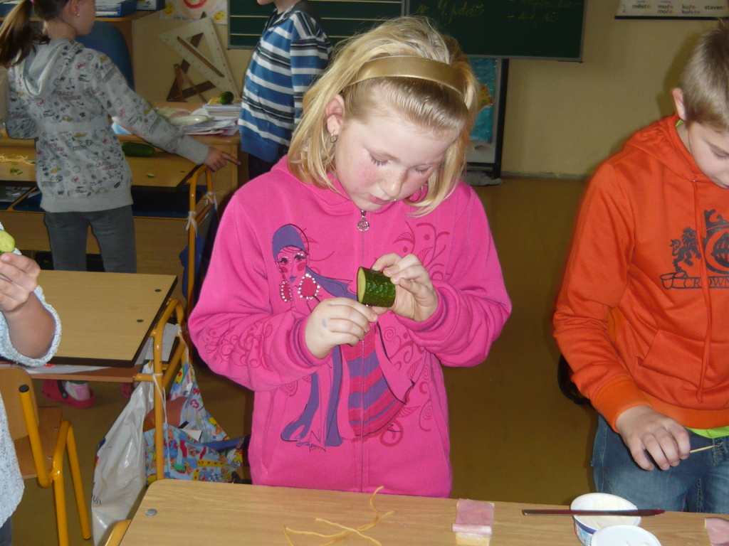 Pohled do hodiny pracovních činností, ve které si děti připravovaly zdravou svačinku.